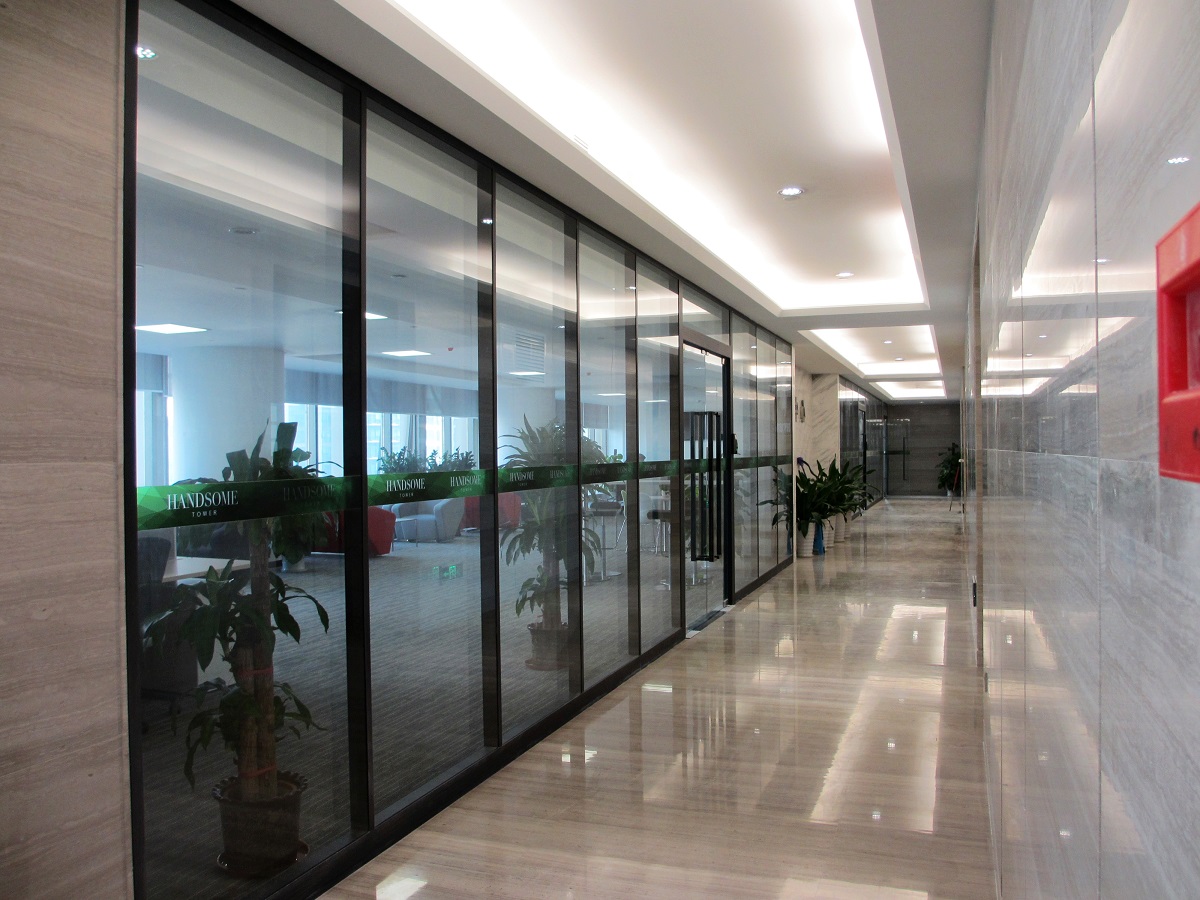 深圳福田瀚森大厦玻璃隔断整栋项目位于坐落在深圳市福田中心区东南片,彩田路与福华三路交汇处,采用雅隔隔墙85款双层玻璃隔断系列,隔墙总厚度85mm,铝合金龙骨平均厚...