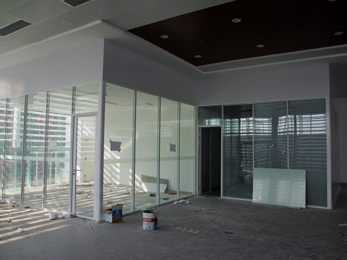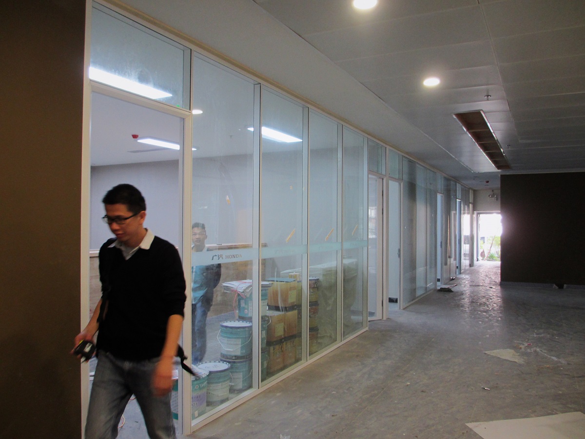 雅隔高隔墙系列常规是采用优质铝合金做为框架,专业设计的型材,具体款式有10-12厘单玻钢化的隔断产品,5+5厘钢化双玻中空加百叶的样式,用在办公室内或者是银行、机关、政府部门均可,隔音效果十分良好,常规的在45dB左右,到顶的一种隔断形式。