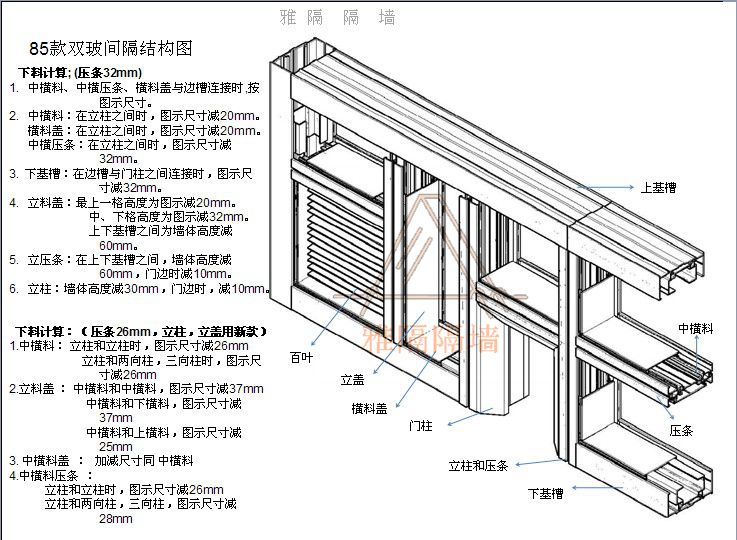您的当前位置:首页> 隔断产品分类>铝合金隔断型材结构图