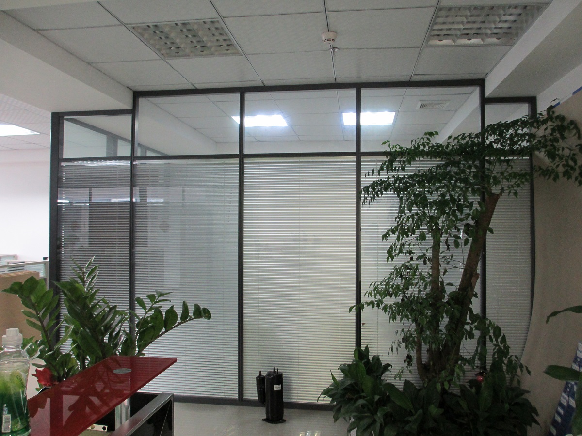 双玻百叶隔断:意思就是双面装清玻,中间内置百叶帘。百叶帘可以根据实际情况考虑是否要装。不装的话,就是双层清玻隔断,成本就是少了百叶帘的价格。另外,百叶隔断一般都是双玻内置,很少有单玻外置百叶的;清玻隔断,可以是双面装钢化清玻,也可以是单层钢化玻璃。