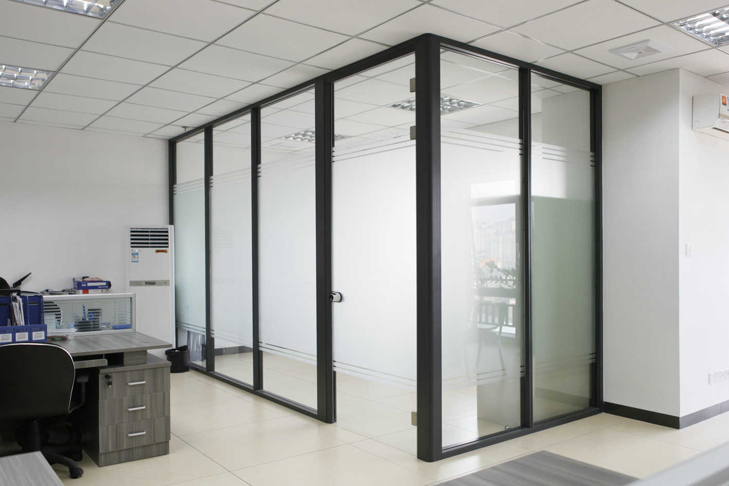 单层玻璃隔断是属于一格到顶格式的办公隔断。通常这种一格到顶的是最经济的格式。
