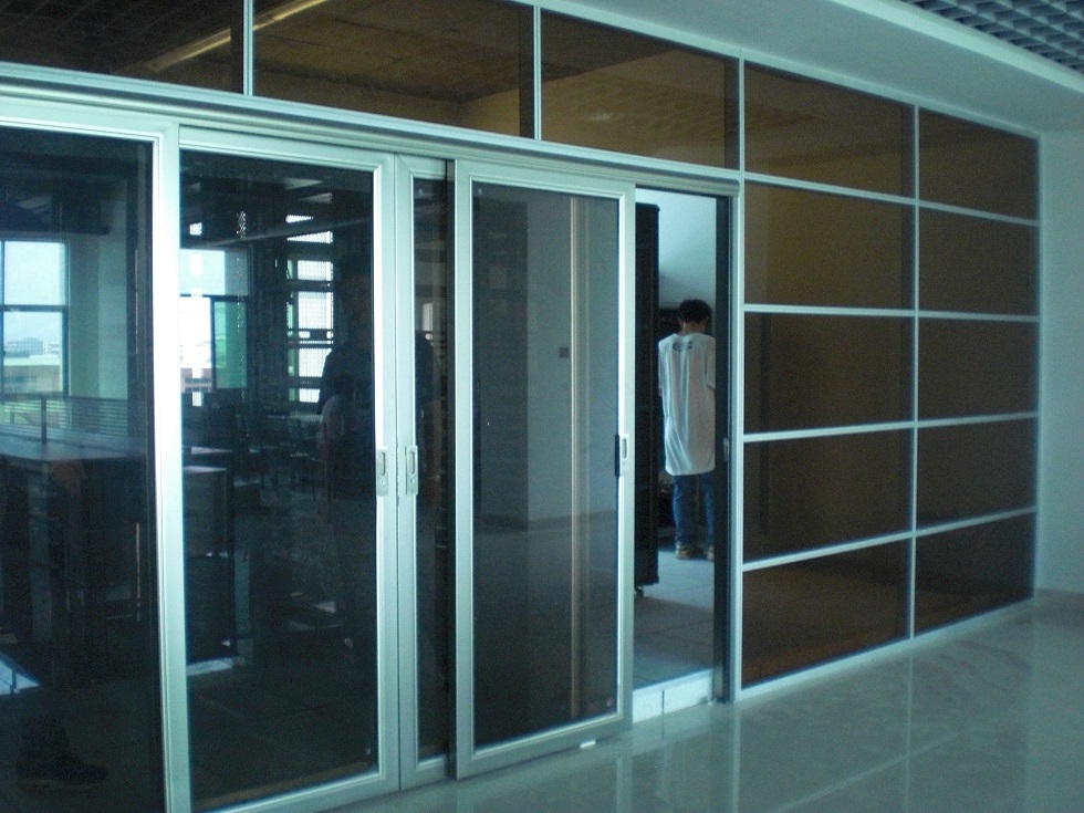 说明:采用1.2mm铝合金和5mm—10mm钢化玻璃组成。它不仅隔音效果好,达到46DB,防火达到B及,看上去还美观、优雅;更是绿色环保建材:可部分拆装、多次重复使用,隔间系统材料有些不会给环境带来废物,使用过程中,可随时调换门、窗、实体模块、玻璃隔断的位置,可重新组合再使用,材料经过拆装后,其损伤极小,而且可以大大降低办公室经常搬迁所产生的费用。内部结构可方便地进行电缆铺设。不用打墙预埋,电缆的维护、更换更方便,强弱电分离,电缆槽可以起信号线的屏蔽作用。